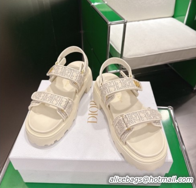 Good Product Dior Dioract Platform Sandals in Oblique Embroidered Cotton White 60302121