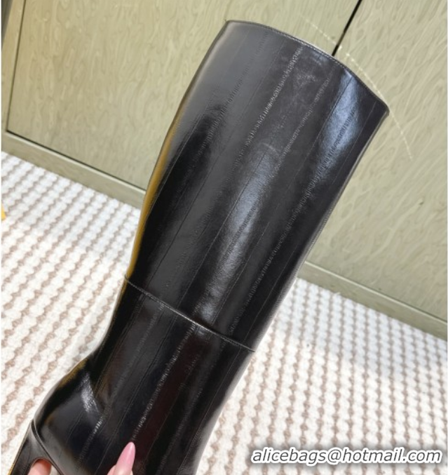 Sumptuous Fendi Arco Heel High Boots 9.5cm in Hagfish Embossed Leather Black 1030033