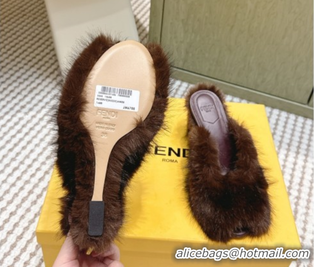 Stylish Fendi Arco Wedge Mules 7.5cm in Rabbit Fur Brown 1030001