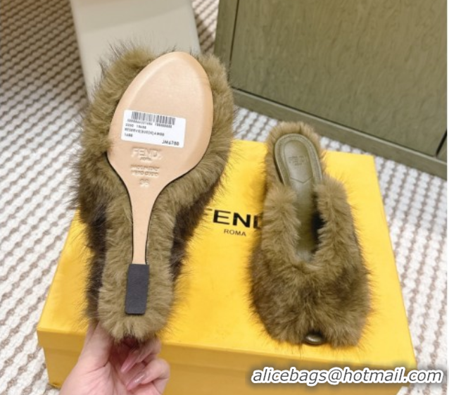 Purchase Fendi Arco Wedge Mules 7.5cm in Rabbit Fur Green 1030002