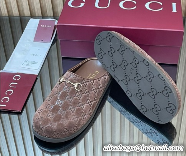 Classic Hot Gucci GG Suede Flat Mules with Horsebit Dark Brown 836057 1020010