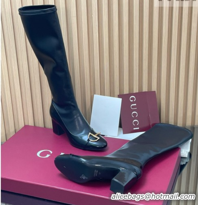Cheap Price Gucci Leather Heel High Boots 6.5cm with Half Horsebit 851420 Black 2026
