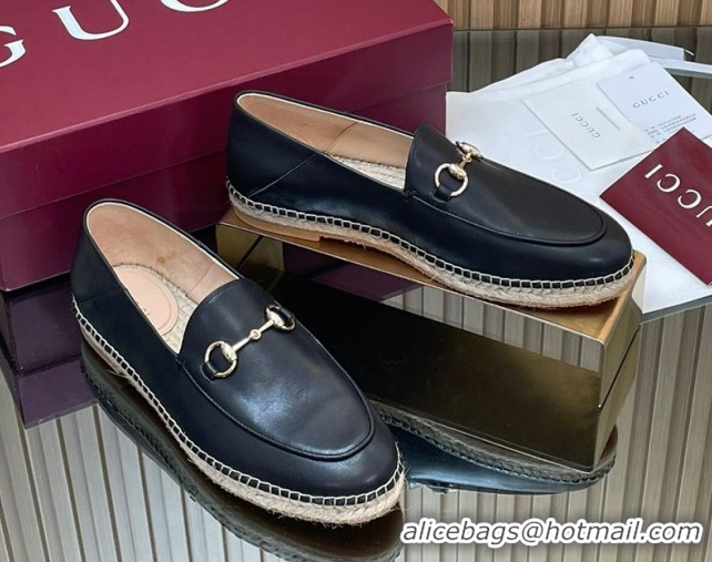 Sophisticated Gucci Calf Leather Flat Espadrilles with Horsebit GG121805 Black 2026