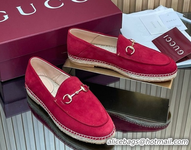 Discount Fashion Gucci Suede Flat Espadrilles with Horsebit GG121805 Red 2026