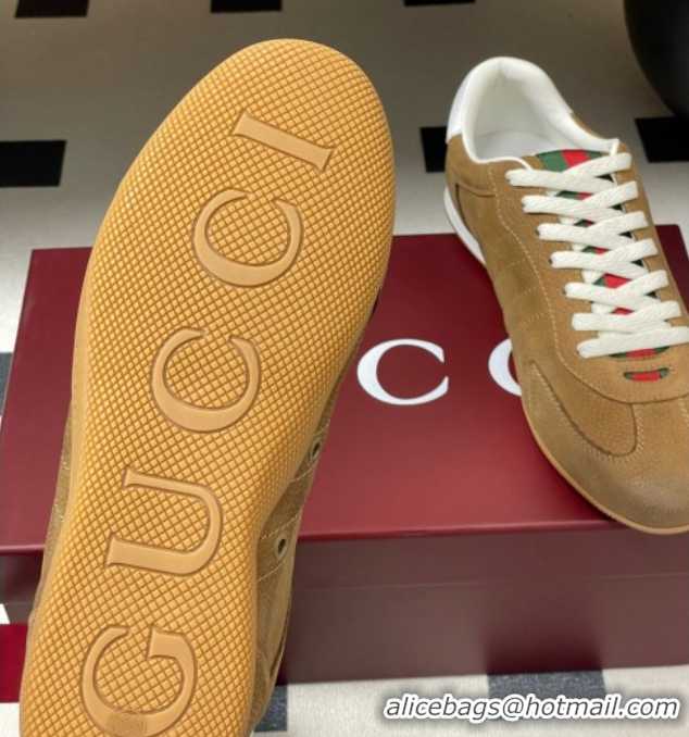 > Shoes Plaza > Gucci Shoes > Stylish Gucci Washed-Effect Grained Leather Sneakers Brown 1021005