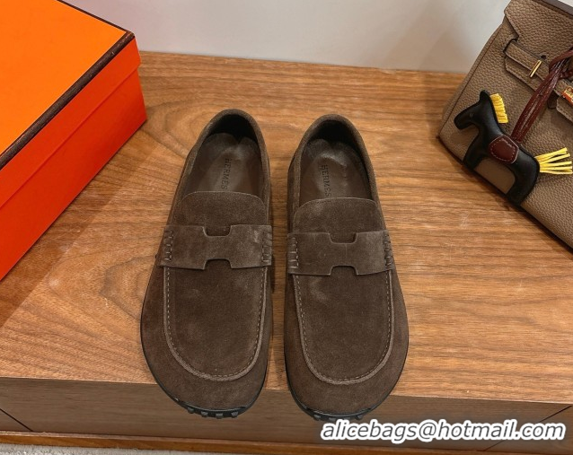 Your Position: Home > Shoes Plaza > Hermes Shoes > Durable Hermes Lazy Loafers in Suede H090805 Dark Brown 2026
