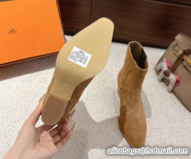 Stylish Hermes Vegas Heel Ankle Boots 6.5cm in Embroidered Suede H252196 Light Brown 2026