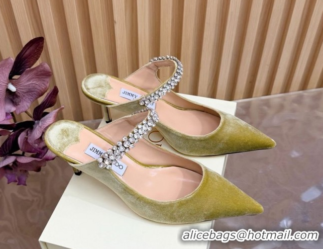 Best Grade Jimmy Choo Bing Heel Mules 6.5cm with Strass Strap in Velvet 0724001 Green 2026