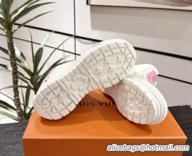 Stylish Louis Vuitton Canvas and Leather High Top Sneakers White/Light Pink 2025 LV082903 0829043