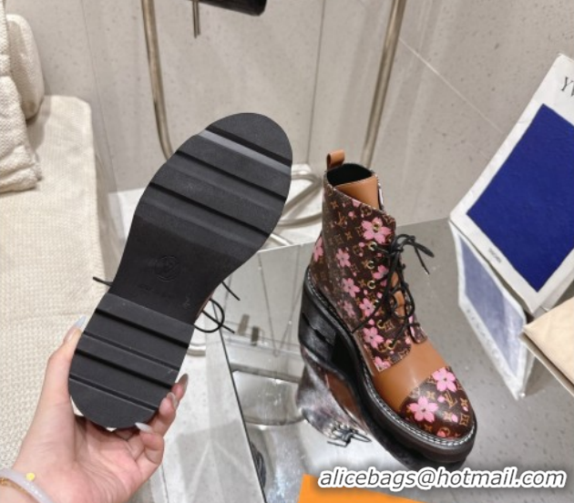 Sophisticated Louis Vuitton LV x TM Monogram Canvas and Leather Laced-up Ankle Boots Brown/Cherry Pink LV102204 1022029