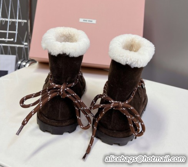 Charming Miu Miu Suede and Wool Laced-up Flat Ankle Boots Dark Brown MM102407 1024147 2025