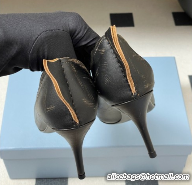 Stylish Prada Antiqued leather pumps 8.5cm with edges Black 2025 1I194O 1027127