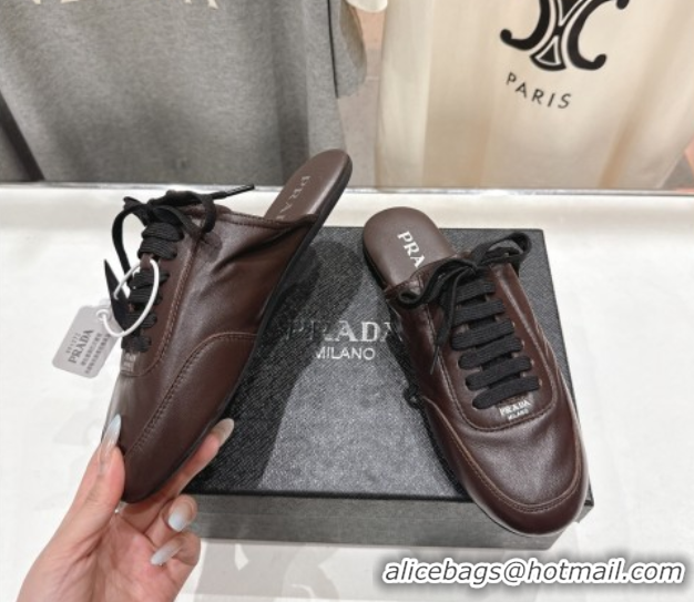 > Shoes Plaza > Prada Shoes > Low Price Prada Collapse Nappa Leather Lace-up Flat Mules Brown 1E989N 1027032