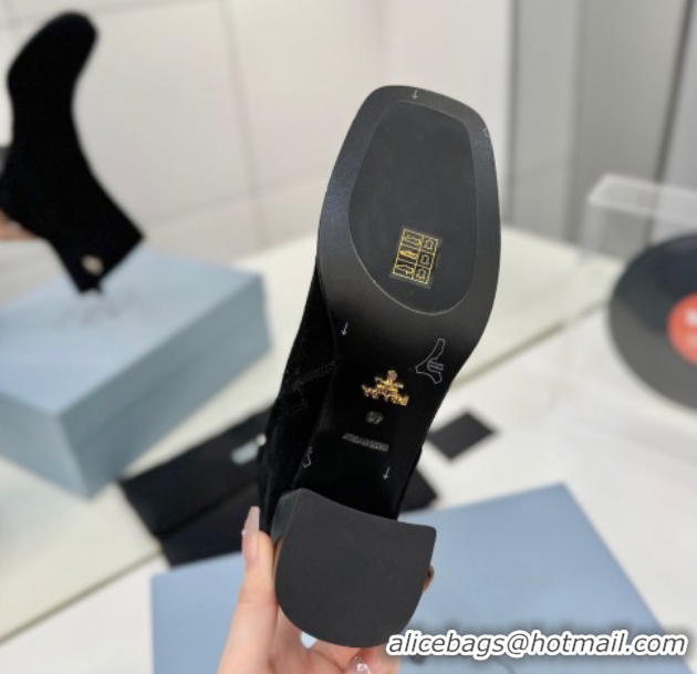 Stylish Prada Suede Heel Ankle Boots 6.5cm Black 2025 PR102705 1027077