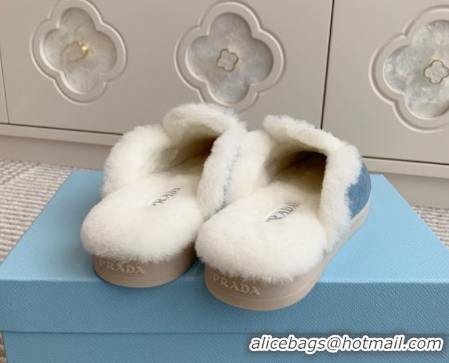 Stylish Prada Suede and Shearling Mules P112007 Blue 2025