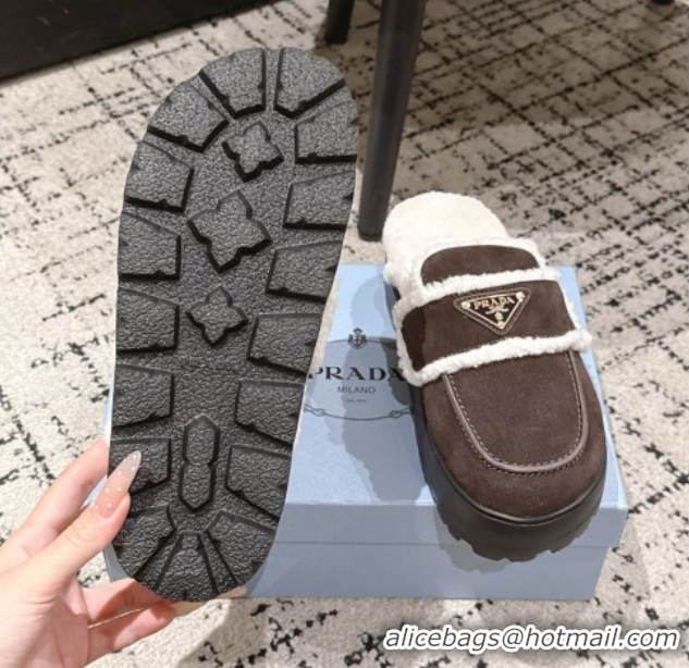 Grade Quality Prada Suede and Shearling Platform Mules 4cm Dark Brown 1XZ778 1027016