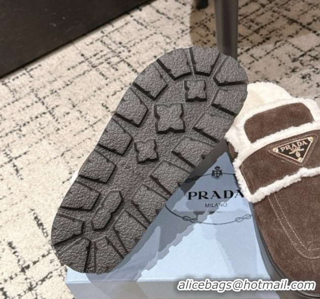 Stylish Prada Suede and Shearling Platform Mules 4cm Dark Brown 2025 PR101107 1027017