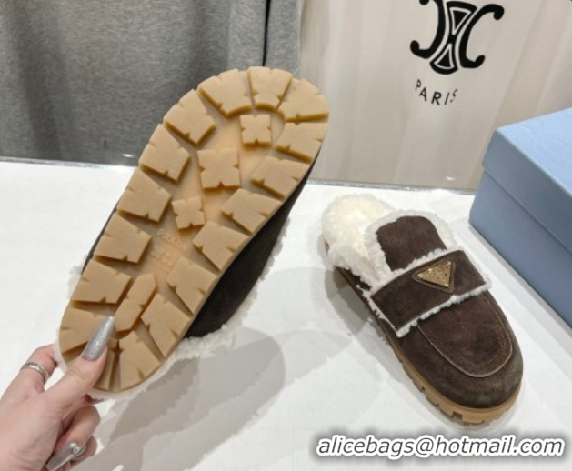 > Shoes Plaza > Prada Shoes > Sophisticated Prada Suede and Shearling Slippers Dark Brown 2025 PR101107 1027004