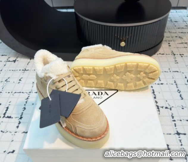 > Shoes Plaza > Prada Shoes > Stylish Prada Suede and Wool Platform Mid-top Sneakers 5cm Beige 2025 1T725N 1027095