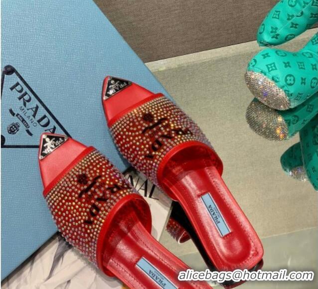 Classic Specials Prada TPU Flat Mules with Crystal Studs Red 2042753