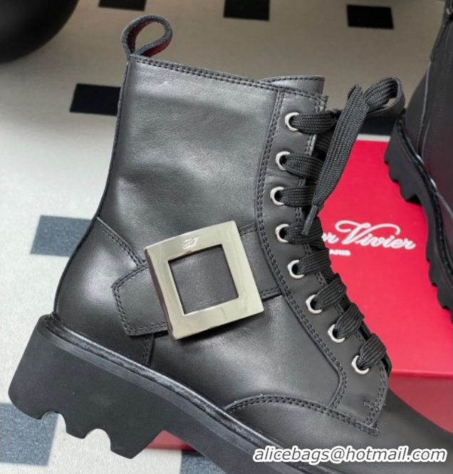 Stylish Roger Vivier Viv' Rangers Truck Ankle Boots 5cm in Leather with Metal-Tone Buckle Black 1030064