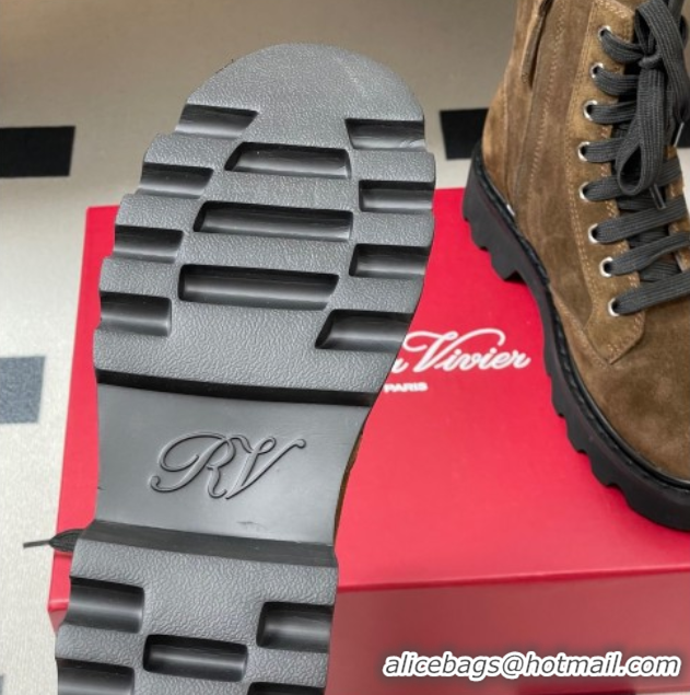 Stylish Roger Vivier Viv' Rangers Truck Ankle Boots 5cm in Suede with Metal-Tone Buckle Brown 1030065