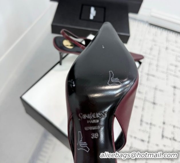 Stylish Saint Laurent Babylone Breteuil Slingbacks Pump 9cm in Calfskin Leather Dark Burgundy 1213002