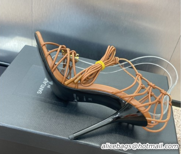 Stylish Saint Laurent Babylone Heel Sandals 9.5cm in Lambskin Leather Brown 0825090