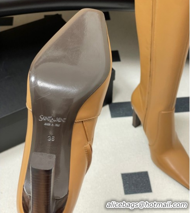 Top Grade Saint Laurent Francoise Heel High Boots 10cm in Leather Yellow 1028110