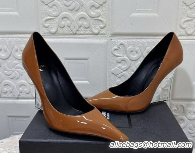 Buy Luxury Saint Laurent Patent Leather Wedge Pumps 10.5cm with Clear Heel Brown 2026 SL022405