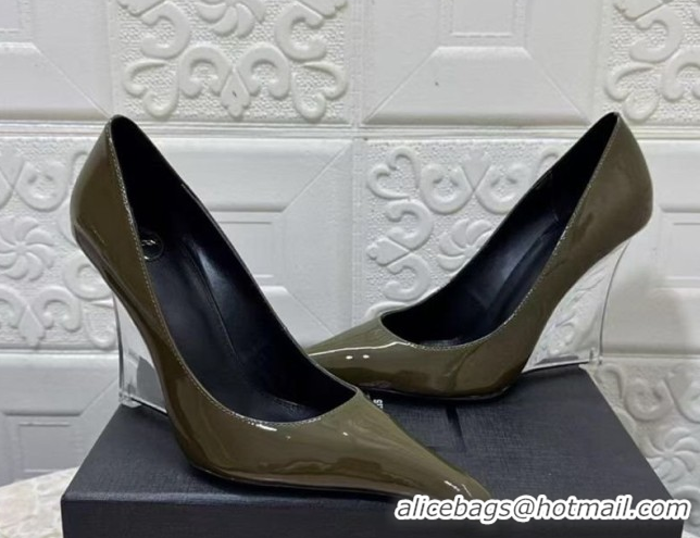 Stylish Saint Laurent Patent Leather Wedge Pumps 10.5cm with Clear Heel Green 2026 SL022405
