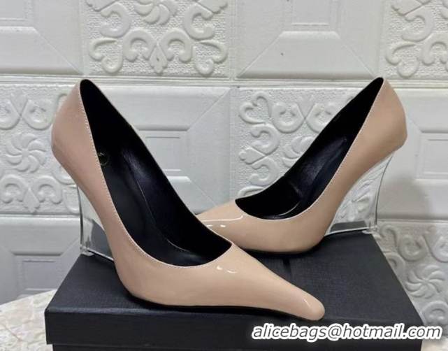 Luxurious Saint Laurent Patent Leather Wedge Pumps 10.5cm with Clear Heel Nude 2026 SL022405