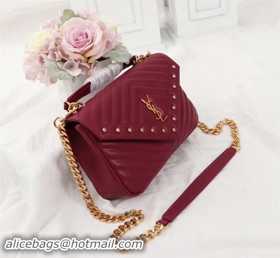Stylish Saint Laurent small quilted leather satchel 26603 Burgundy