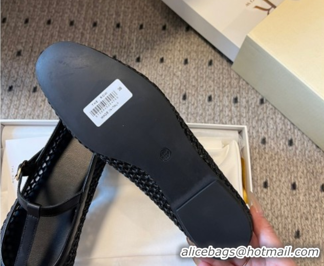 Popular Style The Row T-Strap Flat Shoes in Woven Mesh Black 0604091