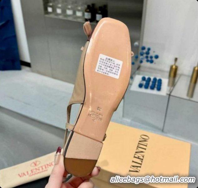 Your Position: Home > Shoes Plaza > Valentino Shoes > Sumptuous Valentino VALET DU ROI Slingbacks Flat in Calfskin Leather with Tassel Bow Beige/Dark Burgundy 1215040