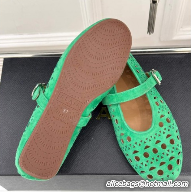 Sumptuous Alaia Ballet Flat in Openwork Suede Green 0224049
