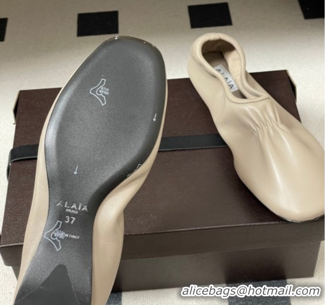 Good Product Alaia Architectura Ballet Flats in Leather with Strap White 2025 AL020701