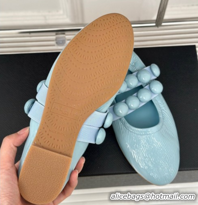Classic Hot Alaia Sphere Ballet Flats in Patent Leather with Double Strap Light Blue AL100808 1008047