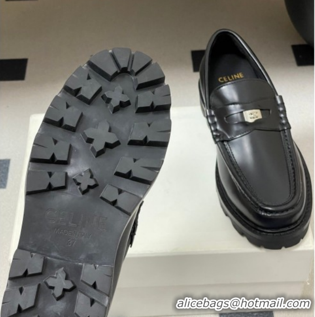 Sumptuous Celine Calfskin Leather Platform Loafers with Logo Tab Black 60227053 2026