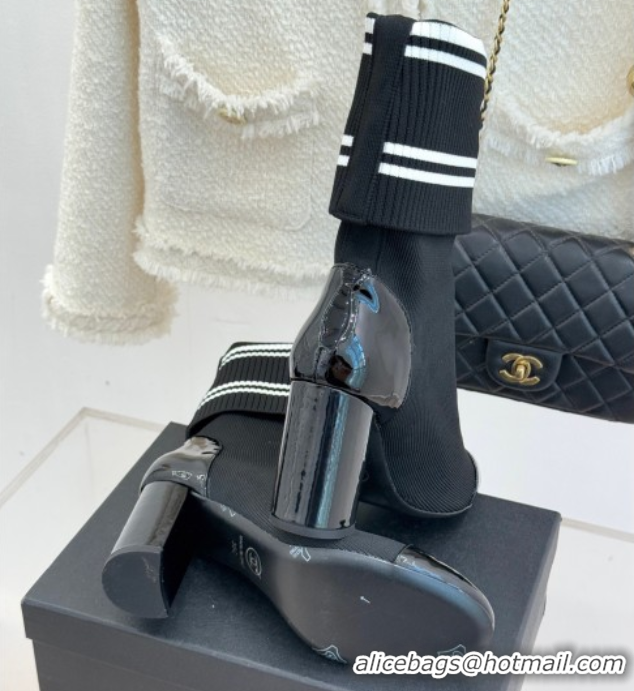 > Shoes Plaza > Chanel Shoes > Sumptuous Chanel Knit and Patent Calfskin Ankle Boots 7cm Black 2025 CH11030318 1103131
