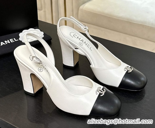 Sumptuous Chanel Lambskin and Calfskin Leather Slingback Pumps 9cm with Strass CC White 2025 CH110301