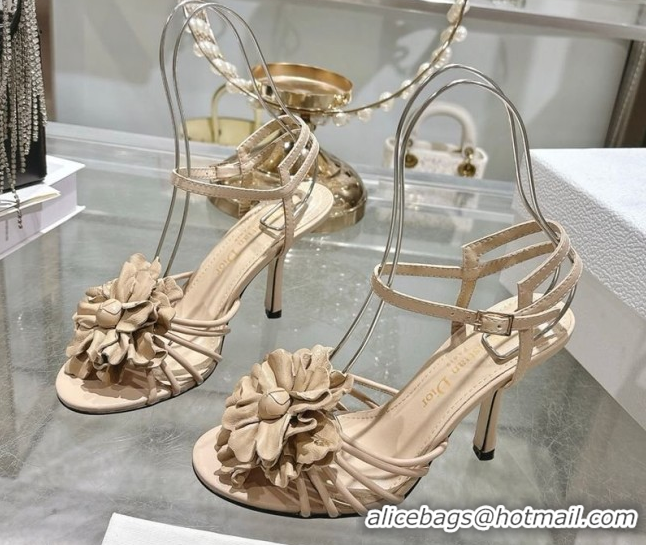Top Design Dior Leather Flower Heel Sandals 7.5cm Beige 2026 DR030205