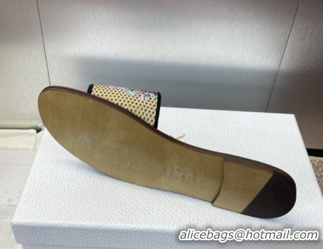 > Shoes Plaza > Chrisitan Dior Shoes > Buy Luxury Dior Dway Flat Slides Sandal in Straw and Embroidered Cotton Light Pink DR082204 0822089