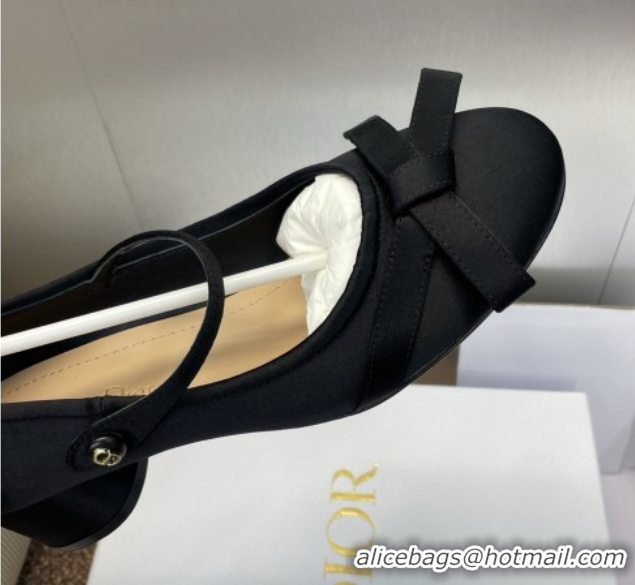 Stylish Dior Lovely-D Mary Janes Pumps in Satin with Bow Black 0822001