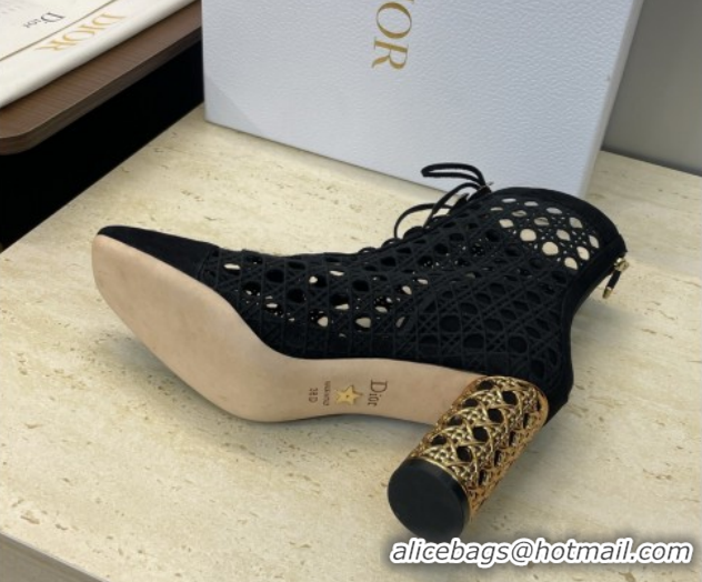 Best Grade Dior Icon Ankle Boots 8cm with Cannage Metal-Tone Heel in Black Cannage Embroidery and Suede 1029056