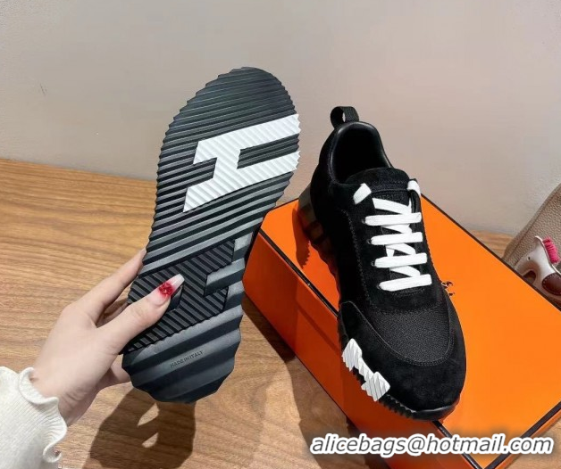 Charming Hermes Bouncing Sneakers in Cotton Canvas and Suede Black/White 1222075 2026
