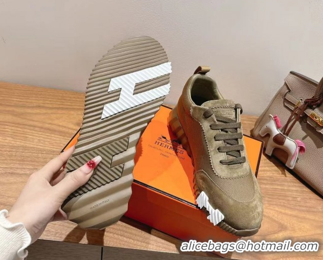 Sumptuous Hermes Bouncing Sneakers in Cotton Canvas and Suede Khaki 1222076 2026