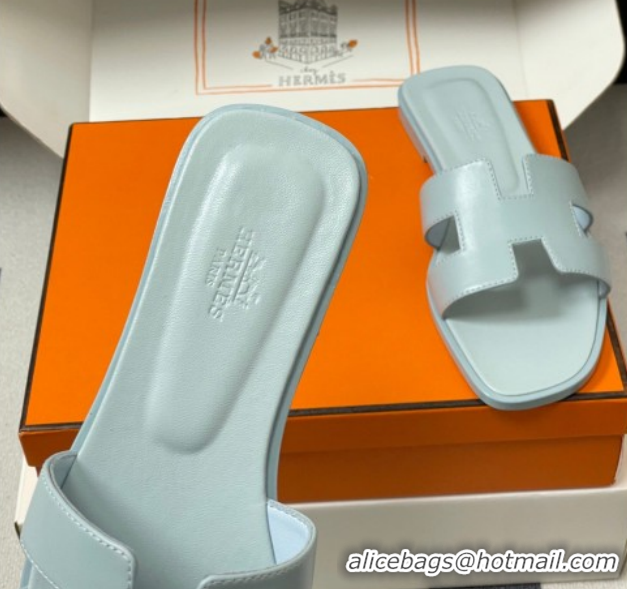 Hot Style Hermes Oran Classic Flat Slides Sandal in Smooth Leather Blue 0304100 2026