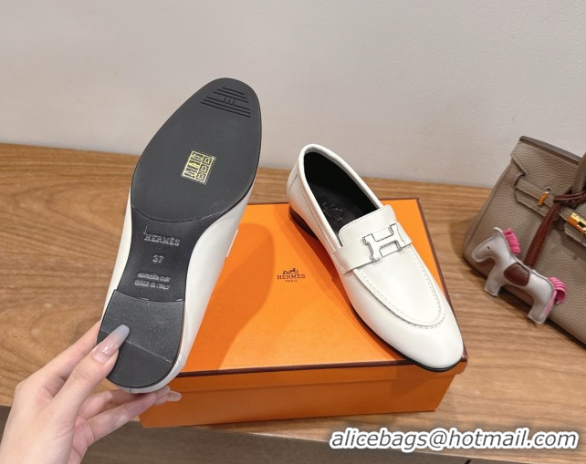 Good Product Hermes Paris Loafers in Calfskin Leather with H White 2025 H082005 0820037