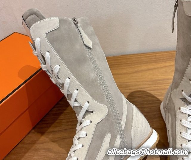 Top Grade Hermes Suede and Calfskin Leather Sneaker Boots H122001 Light Grey 2026
